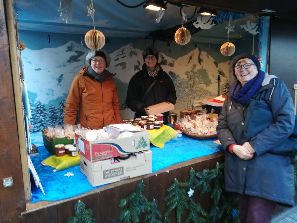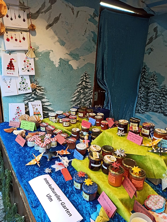 Für den Ulmer Weihnachtsmarkt am 3. Dezember 2023 haben wir viele Dinge vorbereitet. Mit den Einnahmen werden wir in der nächsten Saison 2024 Gartengeräte, eine Dachreparatur, neue Begrenzungen für unsere Beete finanzieren. Es war sehr kalt, hat dennoch Spaß gemacht. Großes Interessse an unserem Garten hatten zum Beispiel Touristen aus der Schweiz.