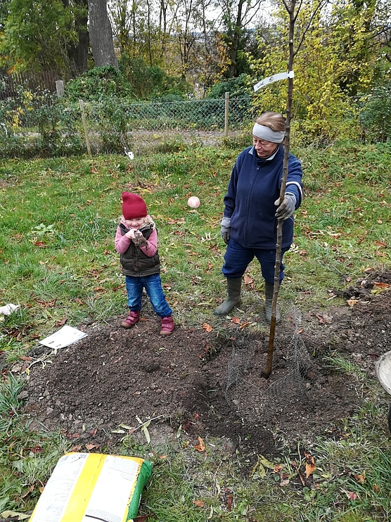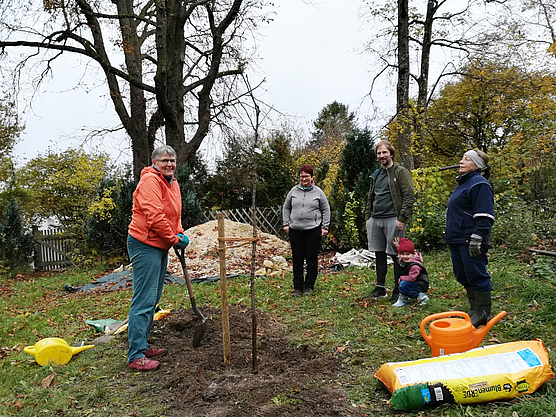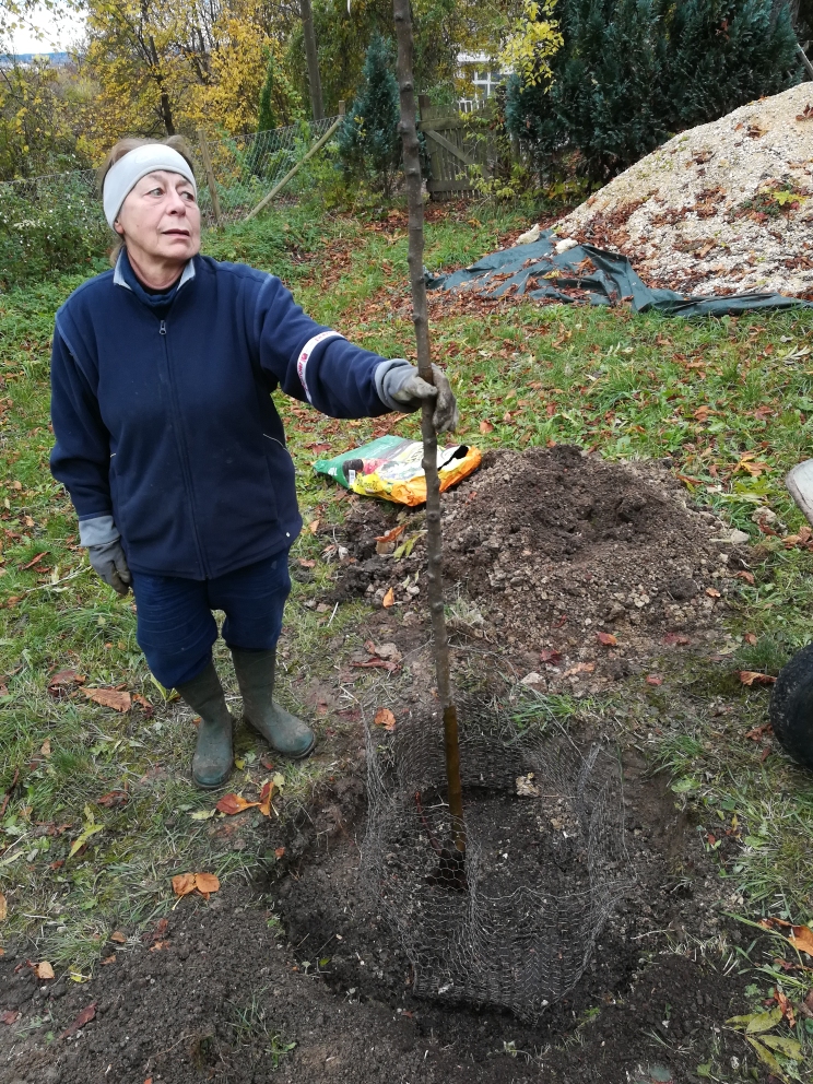 Wir haben uns in einer Befragung unter den Gärtnerinnen und Gärtnern für die Birne "Gute Luise" entschieden. Und in 2 Jahren werden wir wohl die ersten Früchte ernten. Wenn wir Bäume pflanzen, pflanzen wir Hoffnung und schaffen Zukunft - für uns und die nächste Generation.