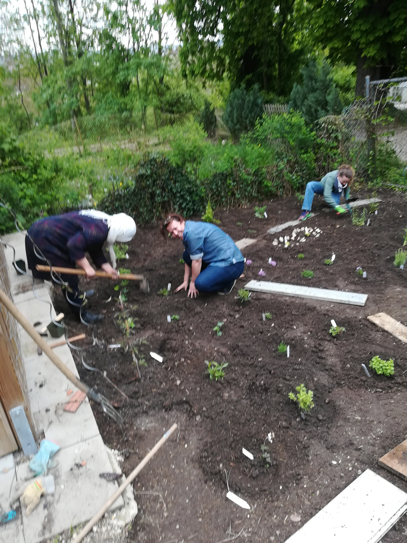 Am Samstag war es soweit, das Beet der Kulturen konnte angelegt werden. Gemeinsam gestalteten wir einen Weg durch das Beet und pflanzten viele verschiedene schöne Gewächse, welche auch in anderen Ländern heimisch sind.