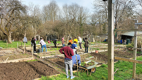 Die neue Gartensaison 2024 beginnt. Schnell wurden alle Beete leicht durchgehackt. Wenn die letzten kalten Nächte vorbei sind, können wir mit dem Pflanzen und Säen auf den gemeinsamen Beeten anfangen. Für dieses Jahr haben wir uns entschieden für MILPA - ein Gemisch von Mais, Bohnen und Kürbissen -, für Erbsen und Buschbohnen, Zucchini, Rote Beete und Karotten, für Spinat Lauch und Kohlrabi... und vieles andere.