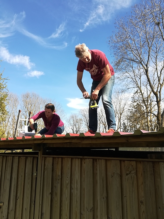 Der Hagelschaden vom letzten Jahr ist behoben. Das Dach der Gerätehütte ist repariert. Dieses Dach ist jetzt vor Hagel sicher. Es war eine tolle Teamarbeit.