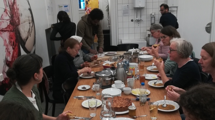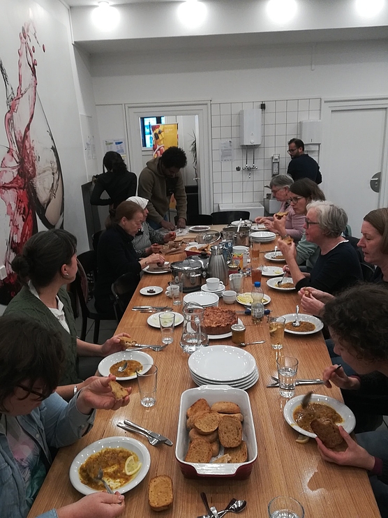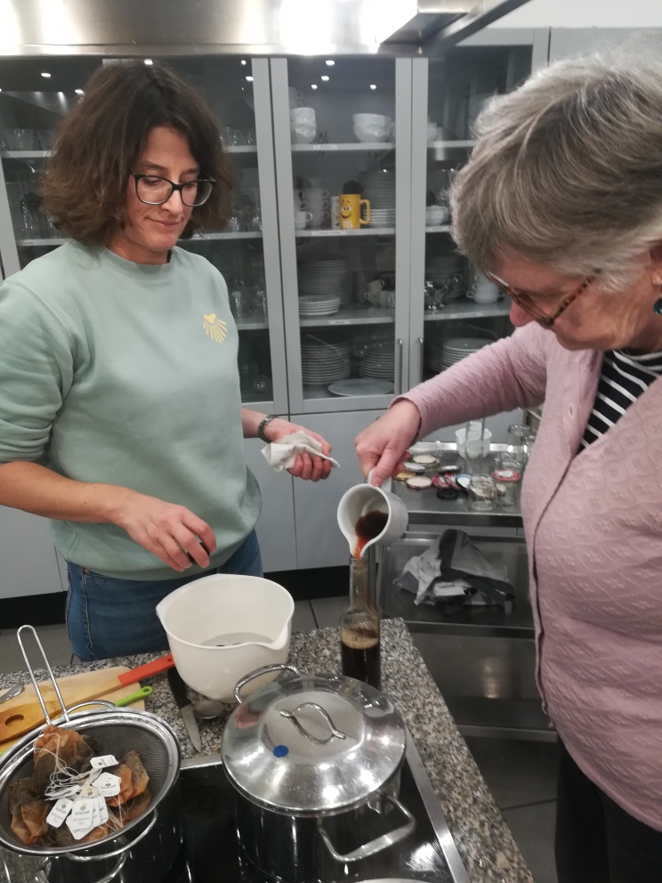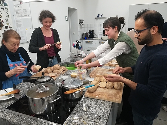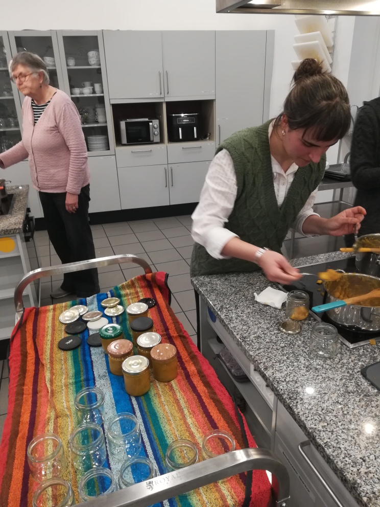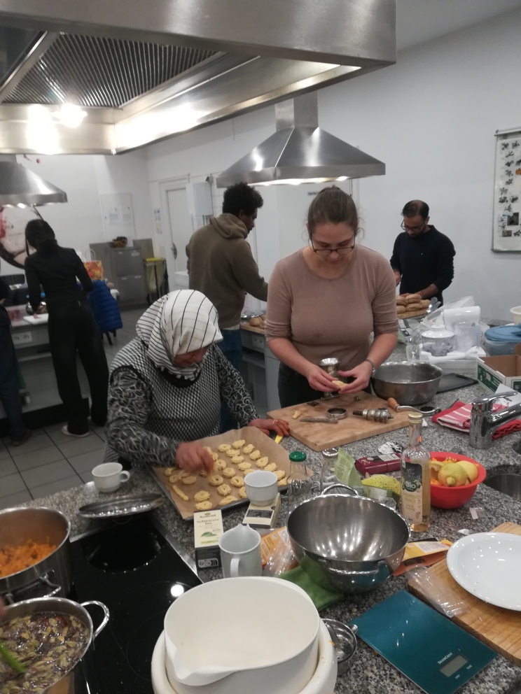 Hafertaler, Spritzgebäck, Kürbis-Chutney, Chai Latte und viele andere gute Sachen haben wir gemeinsam gemacht. Wir tauschten uns aus über die Rezepte. Wir probierten hier und da. Und es wuchs der Appetit, wie das alles schmecken würde. Aber nein, wir haben nicht gleich alles aufgegessen. Sondern wir haben uns auf unsere Markt-Stände vorbereitet: Markt der kleinen Dinge am 22.11.25 im Haus der Begegnung in Ulm und auf den Weihnachtsmarkt am 6.12. auf dem Münsterplatz. „Liebe geht durch den Magen“ heißt es. Verschiedene Dinge, nach unterschiedlichen Rezepten hergestellt, schmecken einfach nur lecker. Es macht neugierig. Man schaut über den Tellerrand. Und es entstehen plötzlich tolle Pläne: Wir könnten doch mal ein interkulturelles Kochbuch verfassen! Das gemeinsame Essen mit indischer Suppe und äthiopischen Chapatis schloss den Nachmittag ab. Alles war gut, das Zusammensein, das Essen, die Gespräche.