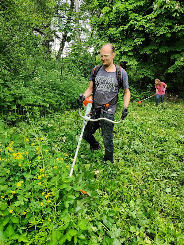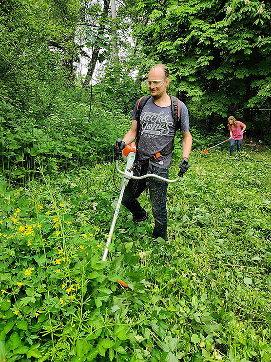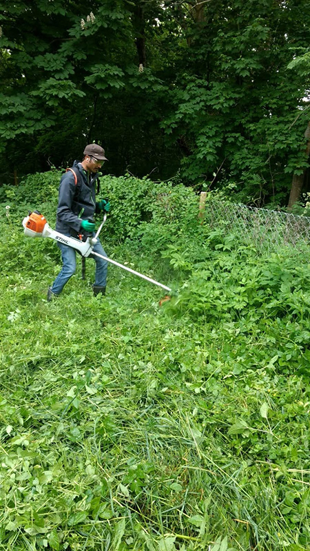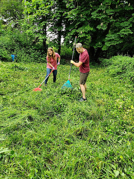 Ganz schön zugewuchert war unser unteres Gartengrundstück. Zwischen meterhohem Gras und Brennesseln war kein Durchkommen mehr. Also haben wir uns eine Motorsense zur Unterstützung ausgeliehen und den Urwald wieder in einen begehbaren Gartenteil verwandelt. Viel Muskelkraft war anschließend beim Zusammenrechen des abgeschnittenen Grases gefragt. So sieht man jetzt endlich auch unsere Büsche wieder, die wir letzten Herbst gepflanzt haben.